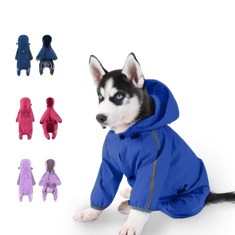COIWE Dog Raincoat Dog Rain Jacket for Puppy Dog with Hat Small Dog Lightweight Raincoat Waterproof Rain Jacket with Reflective Strip. (Navy Blue X-Large)